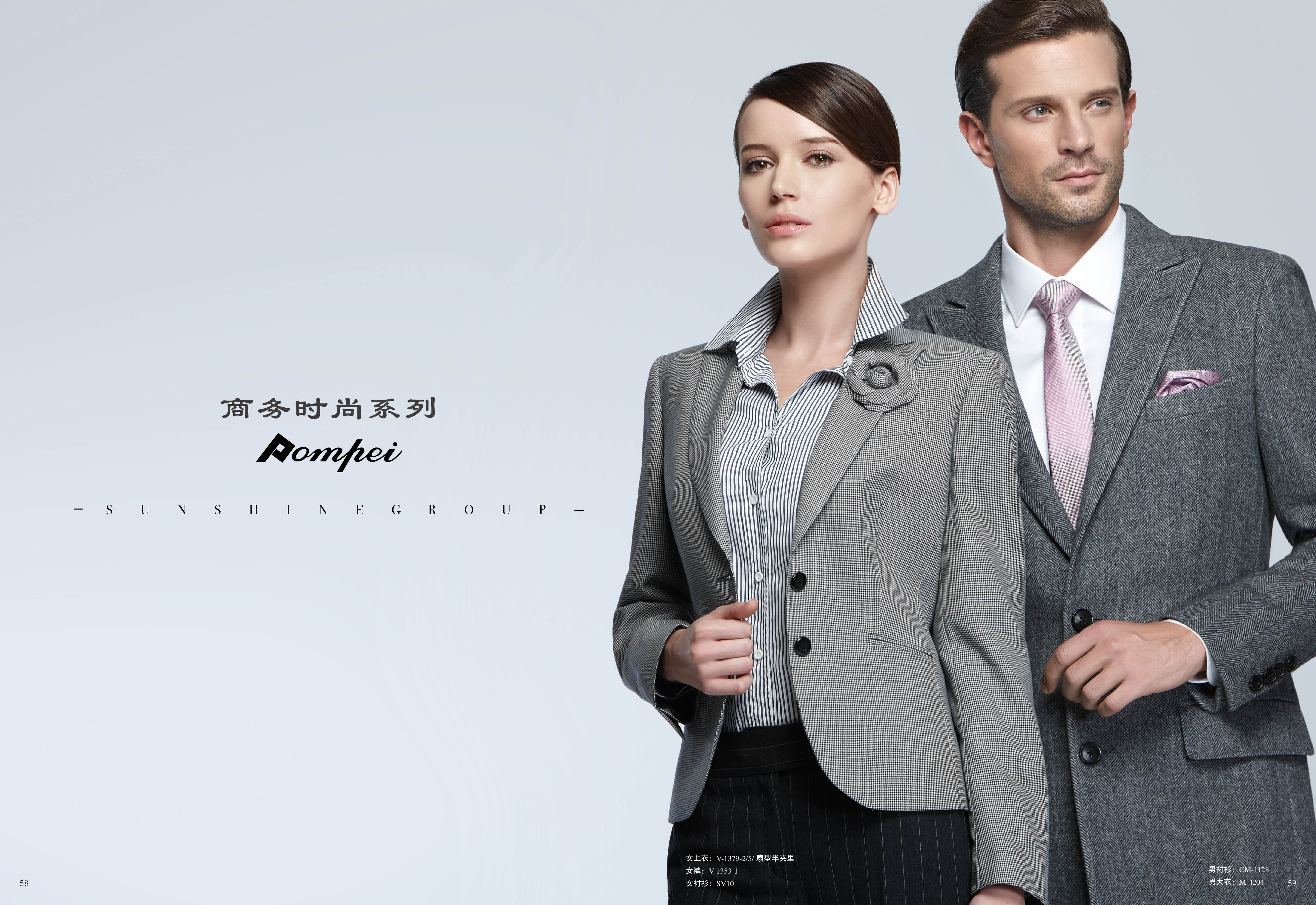 庞贝(POMPEI)品牌是江苏阳光集团有限公司旗下的高档职业装品牌之一,庞贝职业装采用意大利和日本品牌服装的管理、工艺、板型,将世界流行精纺面料与专业定型技术有机地融为一体,实现了国际质量高标准与科学生产流程管理的完美结合。“生产时装化的职业装” 是庞贝职业装多年来秉承的经营核心,也是吸引消费者的魅力所在。